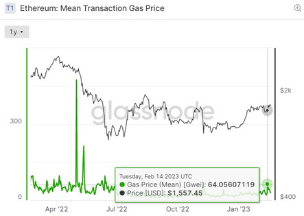 根据Glassnode的数据,以太网上的天然气价格达到了64 Gwei的七个月高点。1 Gwei等于0.000000001 ETH。用户需要为交易支付的最低燃气费(以Gwei为单位)是通过将Gwei燃气价格乘以燃气限额来计算的,燃气限额目前是21,000英镑。