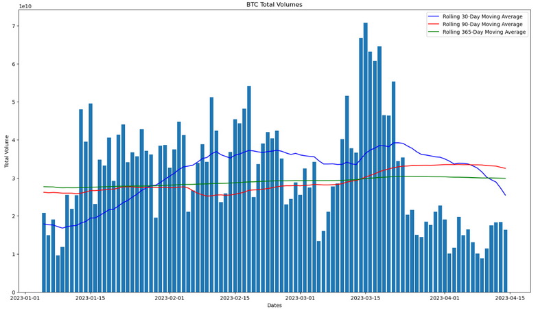 比特币。数据来源:继上个月达到自去年11月FTX加密货币交易所崩溃以来的最高水平后,由于币安BTC对的大幅波动和零交易费用,比特币现货交易量大幅下降。