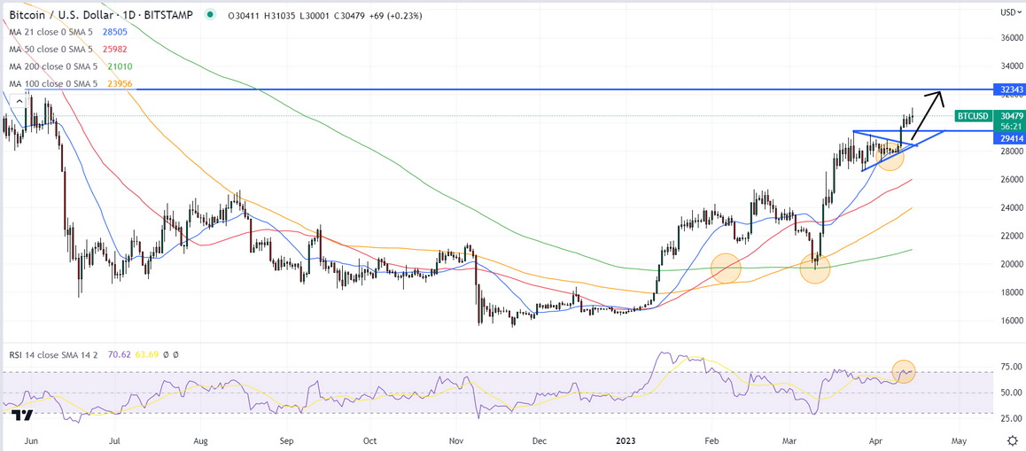比特币将继续受益于技术、宏观和链上顺风图表分析表明,比特币价格继续上涨仍是一个明显的可能性。