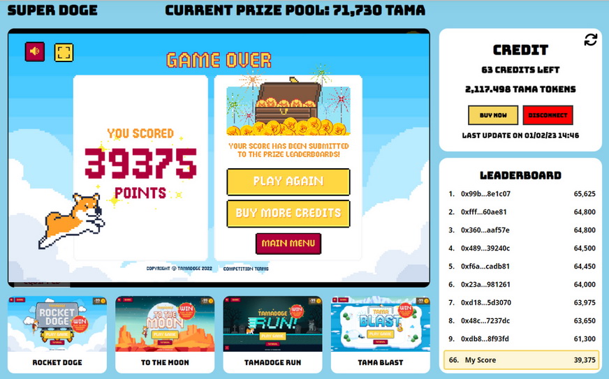 Super Doge, Rocket Doge, To The Moon, Tama Blast and Tamadoge Run – fun and addictive platform games where players collect coins for the chance to win weekly and monthly prizes – have launched this year to huge success, with three more Arcade games expected to drop in the coming weeks.