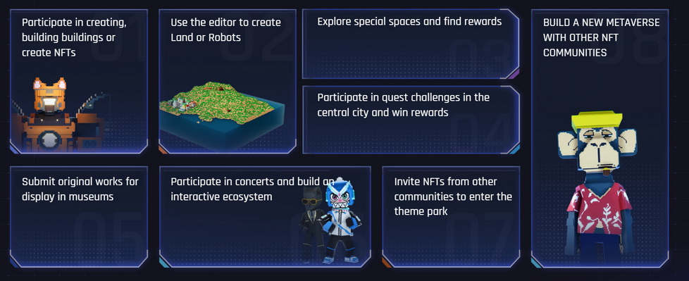 The RobotEra metaverse is split into seven different continents taking the form of NFTs. After attaining a RobotEra NFT avatar, players can acquire plots of land.