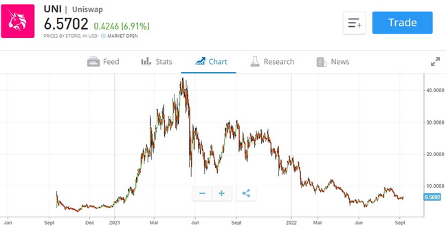 At the heart of the exchange is the native token UNI. Investors who bought the coin at the end of 2020 went on a massive bull run until April 2021, providing returns of more than 1,200%.