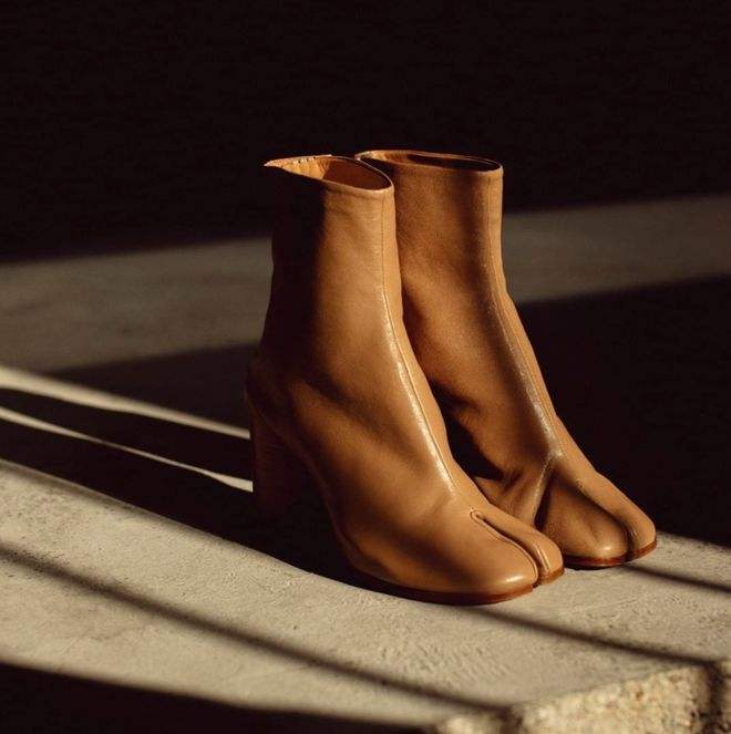 从此,Tabi鞋靴就成为这个品牌的代表款式,从起初的高跟踝靴,衍生出分趾运动鞋、凉鞋等丰富的单品。