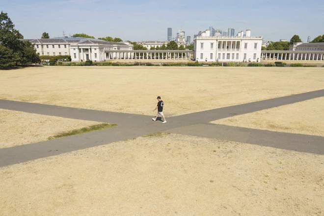 8月14日,伦敦格林威治公园草坪枯黄。/视觉中国