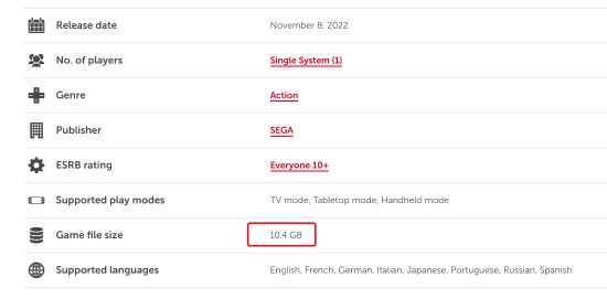 近日,任天堂在线商店上线了《索尼克 未知边境》的商品页面,其中显示该作的游戏容量为10.4GB。目前游戏已开启预售,将于11月9日推出,支持简体中文。