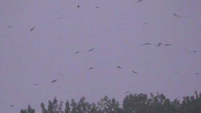 据报道,9月3日傍晚,在南京滨江上空出现大量老鹰聚集,当天18时30分有近百只。这些老鹰动作灵敏时而高空盘旋,时而俯冲直下,滑翔过程中还不停地发出“唧唧唧”的叫声,附近的老鹰似乎是听到了同伴的召唤,从四面八方飞来,场面一度热闹非凡。