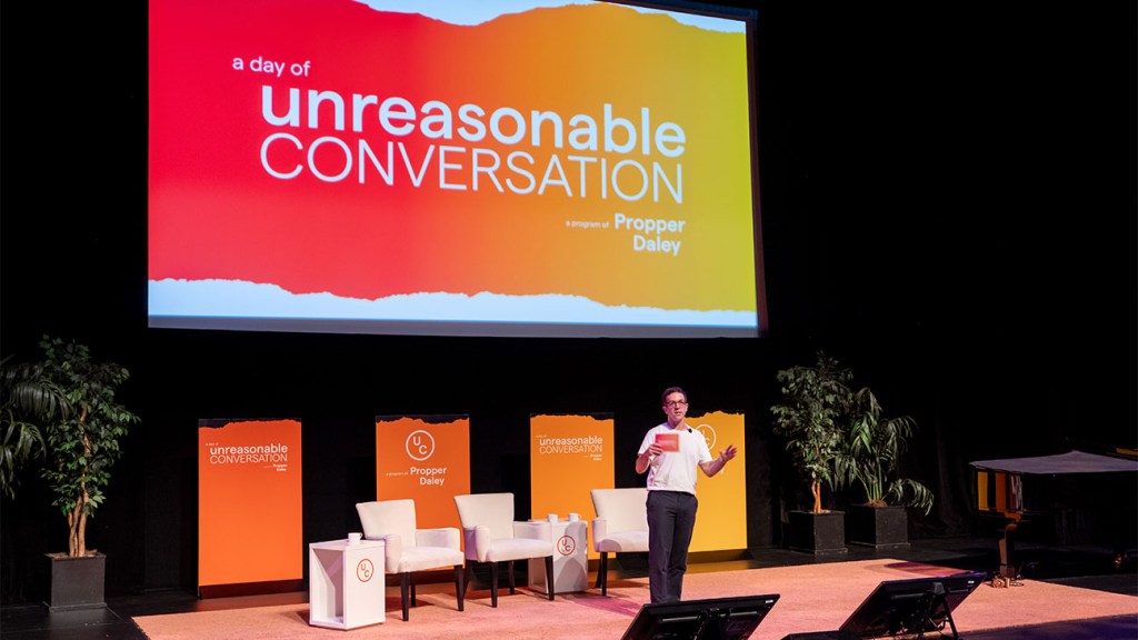 Founded by Propper Daley, A Day of Unreasonable Conversation is a yearly gathering of television writers, producers, executives, activists and others designed to inspire the exchange of fresh ideas and perspectives in media. Through the power of TV storytelling, A Day of Unreasonable Conversation strives to stimulate a more nuanced conversation surrounding the greatest challenges and opportunities facing the world.